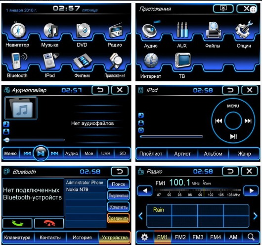 Кроме прочего, с помощью этого головного устройства вы сможете выходить в интернет и пользоваться функциейотображения пробок на дороге. Благодаря этой функции навигатор в вашей магнитоле будет прокладывать дорогу с учетом пробок, т.е. выбирать для вас самый быстрый и оптимальный путь. Чтобы появились доступ в Интернет и функция отображения кнопок, нужен модем Intro GPS 3G. Модем не входит в стандартную комплектацию и приобретается отдельно.