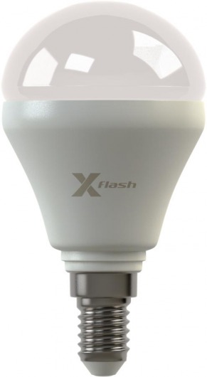 Светодиодная лампа X-Flash MINI E14 4W оптимально подходит для всех типов светильников, которые рассчитаны на лампы накаливания с таким цоколем. Колба модели матовая и имеет шаровидную форму. Алюминиевый радиатор led лампы способствует понижению температуры внутри нее, тем самым увеличивается срок службы. Данная модель рассчитана на напряжение 220 В. Мощность диодной лампы X-Flash — 4 Вт., яркость — 400 Лм, а температура свечения  3000 K (это желтый свет).