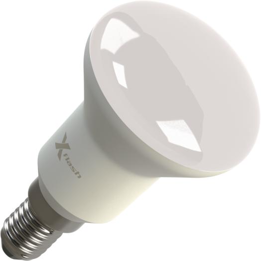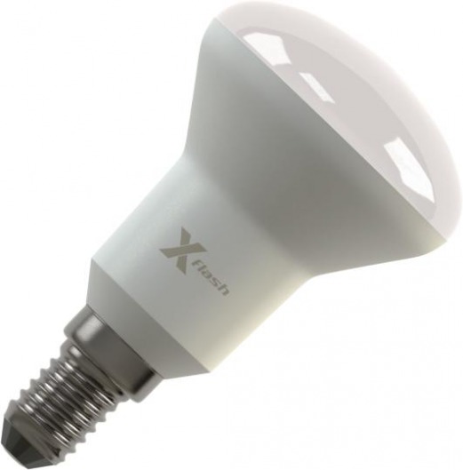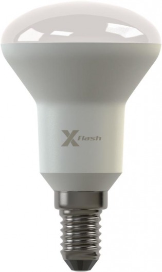 Светодиодная лампа X-Flash FUNGUS E14 5W выполнена в форме лампы-рефлектора с матовой колбой, корпус изготовлен из теплорассеивающей пластмассы, что значительно повышает ее безопасность. По форме, цоколю и размерам led лампа соответствует аналогичным люминесцентным лампам и лампам накаливания. Она имеет алюминиевый радиатор, который эффективно снижает температуру внутри лампы. Данная модель рассчитана на напряжение 220 В. Мощность диодной лампы X-Flash — 5 Вт., яркость — 400 Лм, а температура свечения  3000 K (это желтый свет).