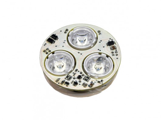 Светодиодный кластер P60/70-3/1 (CREE) — это печатная плата на текстолитовом основании, на которой расположены 3 мощных и ярких светодиода Cree цвета RGB. Данный светодиодный кластер поможет вам создать свечение любого цвета. Кластер отличается высокой эффективностью, надежностью и низким энергопотреблением. Также светодиодный кластер защищен от перепадов напряжения и неправильного подключения.