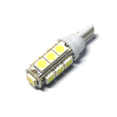 Светодиодная лампа Т10 13 SMD с 13-ю яркими светодиодами по окружности лампы, которые светят холодным белым светом, является отличной заменой лампам накаливания и может быть установлена также в салон или подсветку номерного знака.