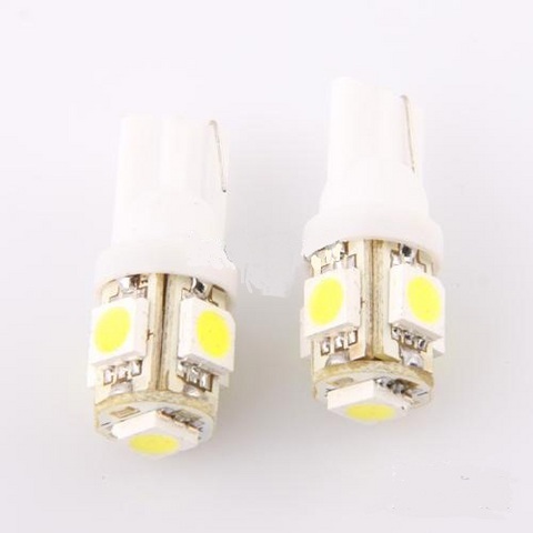 Светодиодная лампа Т10 5 SMD цокольная – это лампа объёмного света, построенная на базе сверхъярких SMD диодов, 4 из которых светят по окружности лампы, а один -  вперед.  Цоколь – T10, 5 SMD чипов. Лампа светит ярким белым светом. Температура цвета - 6000-7000k. Предназначена для установки в габариты, подсветку номера или дверную подсветку – туда, куда позволяет цоколь Т10. Яркость составляет 60 Люмен.