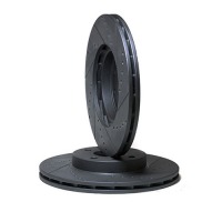 Передние вентилируемые тормозные диски Darbis Спорт 14” с проточками спроектированы при участии инженеров НАМИ. Комплект выполнен из высокоуглеродного чугуна. Перфорация и проточки улучшают отвод высокой температуры и удаляют газопылевые прослойки между колодкой и ротором тормозного диска после интенсивного замедления движения.