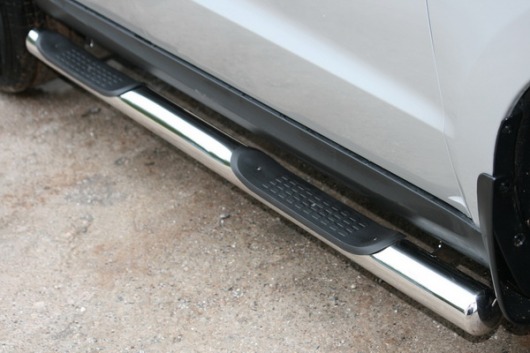 Пороги на Hyundai Santa Fe – это боковые подножки из нержавеющей стали диаметром 76 мм, которые позволяют более комфортно входить и выходить из салона автомобиля. Подножки Hyundai Santa Fe очень прочные, надежные и долговечные: они не боятся коррозии, сколов и царапин и выдерживают большие нагрузки.