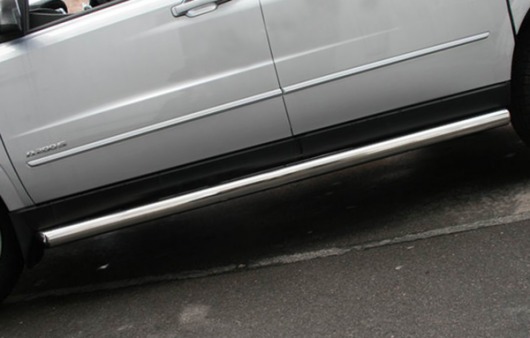 Пороги на SsangYong Actyon Sport – это боковые подножки из нержавеющей стали диаметром 76 мм, которые позволяют более комфортно входить и выходить из салона автомобиля. Подножки SsangYong Actyon Sport очень прочные, надежные и долговечные: они не боятся коррозии, сколов и царапин и выдерживают большие нагрузки.