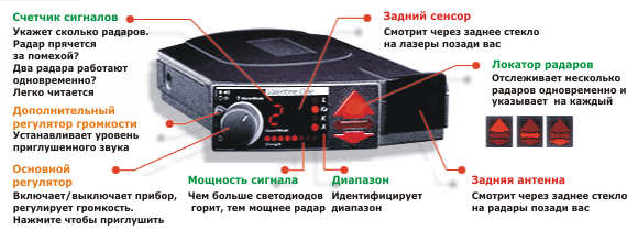 С минимальными ошибками определяет до 8 радаров одновременно на расстоянии до 5 км