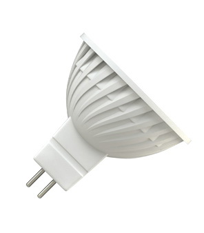 Радиатор данной лампы — ребристый, алюминиевый, что способствует эффективному охлаждению и большему сроку службы. Такой лампой невозможно обжечься: светодиоды практически не выделяют тепла, а экономия электроэнергии, по сравнению с галогеновыми аналогами MR16, существенная. Подходит для декоративных светильников, бра, наружного освещения.