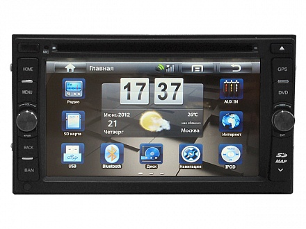 вывод AV с DVD проигрывателя на вторую зону, использование в качестве Wi-Fi роутера, голосовой ввод, доступ к интернету с помощью Wi-Fi USB модуля (в комплекте) и 3G USB модема (в комплекте), подключение iPod, подключение к кнопкам руля, подключение парковочных датчиков