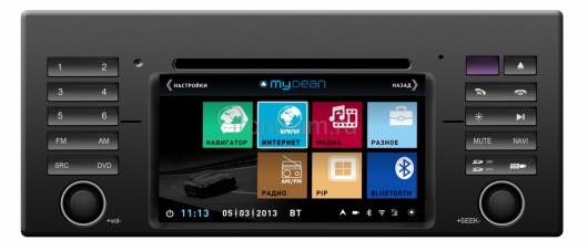 Штатная магнитола MyDean 3082 — многофункциональное устройство, устанавливаемое в штатное место. Эта модель специально разработана для автомобилей BMW 5. Устройство устанавливается так же, как и заводская аудиосистема, однако обладает значительно большими возможностями. Управление ШГУ можно осуществлять с помощью кнопок на руле, что очень удобно и позволяет не отвлекаться от управления авто.