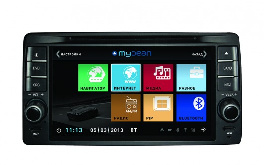 Штатная голова сделана на базе двухъядерного процессора частотой 1 Ггц семейства ARM Cortex с очень высокой производительностью. На ШГУ MyDean 1212 устанавливается операционная система WinCE 6.0 с полностью русифицированным меню. Сенсорный дисплей диагональю 7", с разрешением 800х480 и высокой контрастностью позволяет отлично просматривать фото и видео всех основных форматов, включая видео высокой чёткости HD. Также Вы можете просматривать эфирное телевидение, для этого в штатную голову встроен аналоговый ТВ-тюнер.