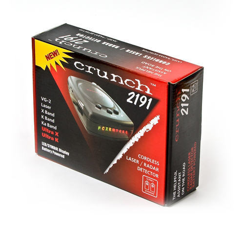 Радар-детектор Crunch 2191 обнаруживает радарное и лазерное излучение совершенно любых диапазонов, используемых полицейскими радарами, официально принятыми на вооружение. Помимо этого, аппарат с легкостью может зафиксировать даже импульсные радары, давая те самым водителю время для принятия решения. Дружественный интерфейс и простота в установке делают его особенно популярным среди автолюбителей.