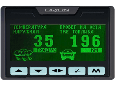 Автомобильный бортовой компьютер Орион БК-40 контролирует основные параметры работы автомобиля и выводит всю информацию на большой графический мультидисплей, на котором вы можете увидеть до 7 параметров одновременно. Это позволит существенно сэкономить ваше время, ведь теперь нет необходимости отвлекаться лишний раз на переключение и поиск интересующих вас параметров.