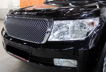 Передняя решетка радиатора для Toyota Land Cruiser 200 является альтернативой штатной заводской решетке. Этот стильный декоративный элемент не только изменит внешний вид Вашего авто, но и продлевает срок службы двигателя. Главное предназначение данного аксессуара — охлаждение двигателя автомобиля встречным воздухом. Через радиаторную решетку воздух попадает в подкапотное пространство, тем самым регулируя температуру двигателя.