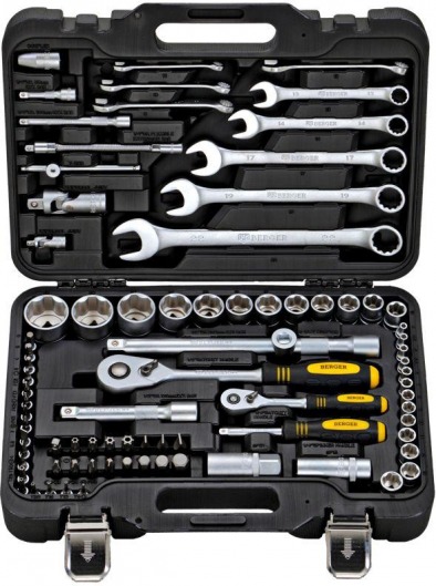 BERGER BG082-1214 — это набор в чемодане, который включает в себя 82 предмета. В данном наборе для автомобиля находится именно тот ручной инструмент, который может понадобиться как в дороге, так и дома. Удобный и стильный кейс позволяет вам хранить данный набор в любом месте — в автомобиле, гараже, на складе... При этом вы можете не волноваться, что инструмент покроется ржавчиной и испортится от перепадов температур, ведь высокое качество изготовления в любом случае оставит оборудование в целости и сохранности.