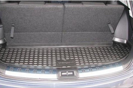 Поддон в багажник черного цвета предназначен специально для автомобилей Nissan Qashqai+2 от 2008 г.в.. Этот модельный коврик идеально подойдет по размерам багажнику вашего авто.