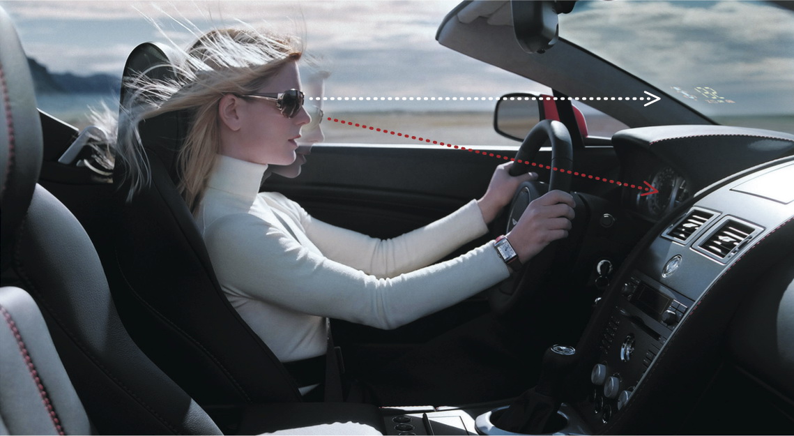 Даже при небольшой скорости 60 км/ч, оставляя дорогу без внимания на 1с, Вы проезжаете 16м! Используя HUD проектор на лобовое стекло, Вы больше не будете отвлекаться от дороги, так как скорость движения находится у Вас перед глазами.