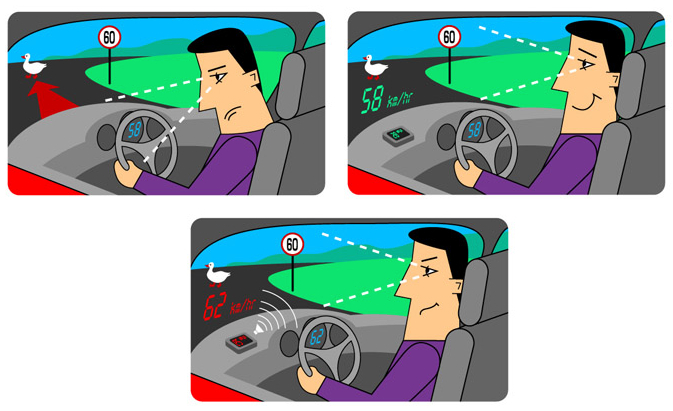 • отображает скорость на лобовом стекле