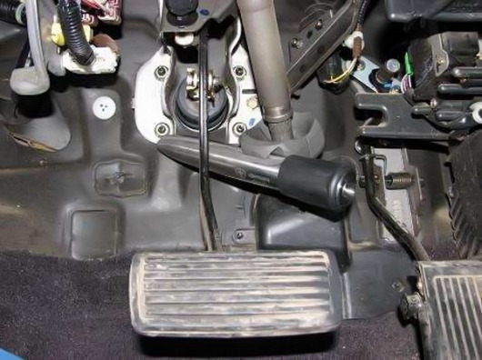 Замок блокирует рулевой вал с помощью муфты, жёстко закреплённой на рулевом валу машины. Стопор устанавливается в муфту автоматически без манипуляции ключом. А вот снимается стопор с муфты с помощью штатного ключа. Поворот его по часовой стрелке на  90° - считывание кода «Замка», на 180° - рабочий ход блокирующего механизма замка.