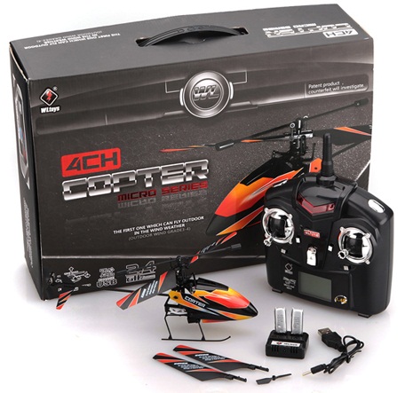 Радиоуправляемый вертолет WL Toys V911 2.4GHz 4 Channel — модель с классической винтовой схемой. V911 имеет гироскоп, 4-канальную аппаратуру управления, которая работает на частоте 2,4 ГГц. Радиус действия пульта управления - 60 метров. Вертолет на радиоуправлении маневренный и послушный, поэтому подходит для начинающих. Время полета 5-6 минут. С игрушкой удобно играть в помещении и на улице. Она может выполнять следующие движения: вверх/вниз, вперед/назад, поворот по/против часовой стрелки и скольжение влево/вправо. Вы можете заряжать аккумуляторы от компьютера с помощью USB-кабеля.