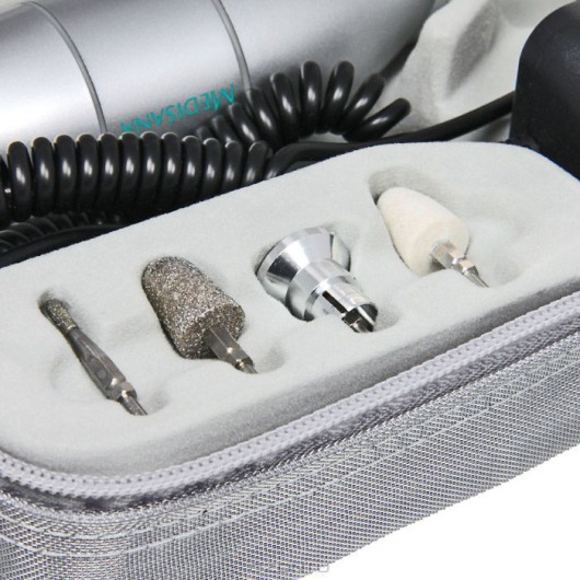 • Маникюрный набор Medistyle S имеет 5 насадок с сапфировым абразивным напылением. Такое напыление неизнашиваемо, таким образом, набор прослужит вам очень долго.