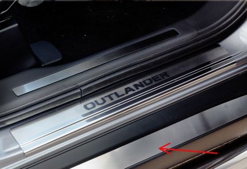 Накладки на пороги дверей Mitsubishi Outlander XL не только обеспечивают защиту верхней и боковой поверхности наружного порога, но и отлично вписываются в интерьер автомобиля, подчеркивая его стиль и индивидуальность. C монтажом проблем не возникнет: установка накладок на наружный порог для Mitsubishi Outlander XL производится на штатные места с помощью скотча 3M.