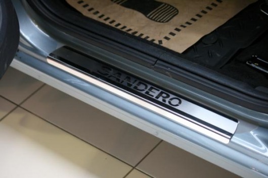 Накладки на металлические пороги дверей Renault Sandero не только обеспечивают защиту верхней и боковой поверхности внутреннего порога, но и отлично вписываются в интерьер автомобиля, подчеркивая его стиль и индивидуальность. C монтажом проблем не возникнет: установка накладок на внутренний порог для Renault Sandero производится на штатные места с помощью скотча 3M.