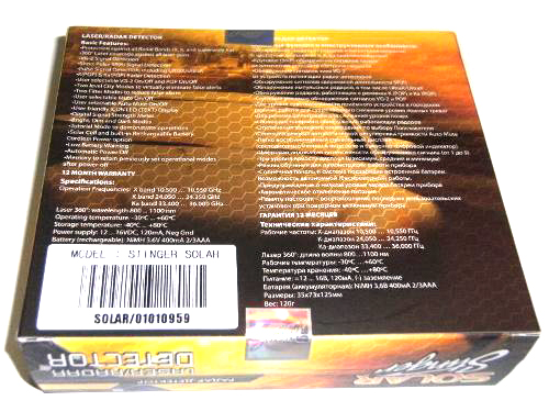 Радар-детектор Stinger Solar разработан для использования на территории России, Украины и стран СНГ. Внедрение новейших технологий и последних наработок компании позволили создать устройство, которое может эффективно обнаруживать полицейские радары во всех известных радио-диапазонах, а так же сигналы от лазерных радаров в радиусе 360 градусов.
