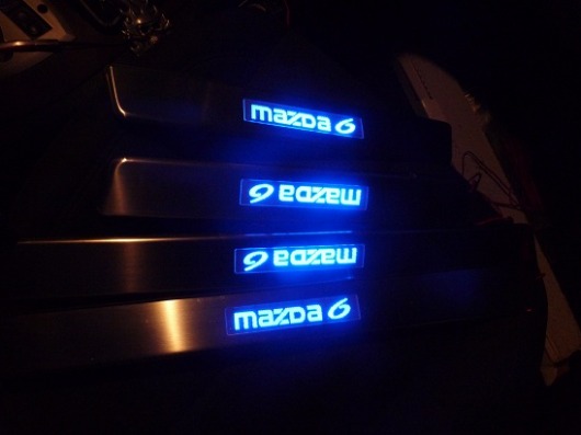 Светящиеся накладки на пороги Mazda 6 не входят ни в одну комплектацию этой модели автомобиля. Они позволят вам сделать свой автомобиль еще более оригинальным и стильным. Каждое открытие двери будет сопровождаться теплым синим или красным светом.