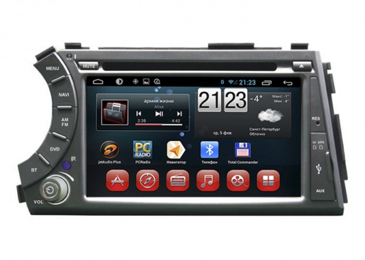 Штатное головное мультимедийное устройство позволяет прослушивать аудиофайлы различных форматов, просматривать видео (в том числе в HD-формате) и фотографии как с внутренней памяти устройства (8 Гб), так и с внешних носителей и  SD карт памяти. Вы также можете слушать аналоговое или интернет-радио или смотреть видео онлайн. Или подключить цифровой ТВ-тюнер, чтобы смотреть цифровые каналы прямо на экране устройства. А еще у вас есть возможность подключить DVD-привод и смотреть фильмы и управлять DVD-меню прямо с сенсорного экрана магнитолы.