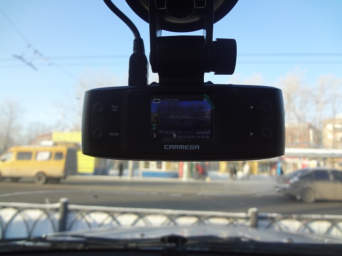 В комплект поставки включена Micro SD карта объемом 8 Гб с адаптером. Carmega VRG-133 может осуществляется видеозапись циклически или фрагментами, длительность которых вы выбираете сами. При заполнении памяти, старые данные (за исключением защищенных от перезаписи) удаляются и сверху начинает фиксироваться новая информация.