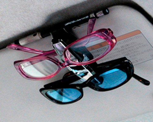 Очечник EC-38 имеет хромированные вставки на черном корпусе, за счет чего очень гармонично будет смотреться в любом интерьере. Крепление приспособления предусматривает его расположение на солнцезащитном козырьке. Помимо того, что в держателе можно закрепить две пары очков, он имеет дополнительный отсек для удержания ручки.