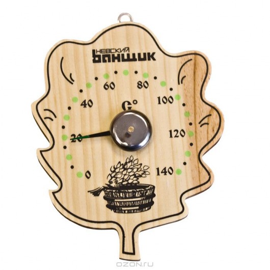 Таким образом, градусник «Лист» не только это функциональный прибор для создания необходимой температуры и атмосферы, но и привлекательный предмет интерьера, слегка выпуклая картинка в форме дубового листка, которая украсит интерьер вашей бани или сауны.