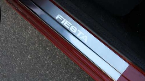 Внутренняя накладка на порог Ford Fiesta — это аксессуар автомобильного тюнинга, который защищает внутренний порог от механических повреждений при посадке и высадке из машины. Декоративные накладки с рисунком на внутренние пороги предназначены для автомобилей Ford Fiesta 3D от 2008 г.в.
