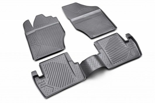 Полиуретановые коврики для автомобиля гладкие, приятные и не пропускают влагу. Черный цвет универсален и подойдет любому авто. В комплекте вы получите 4 коврика в салон автомобиля.