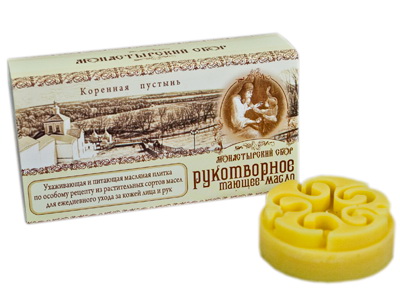Ухаживающая и питающая масляная плитка «Рукотворное тающее масло»  изготовлена по особому рецепту из твердых растительных сортов масел для ежедневного ухода за кожей лица и рук.