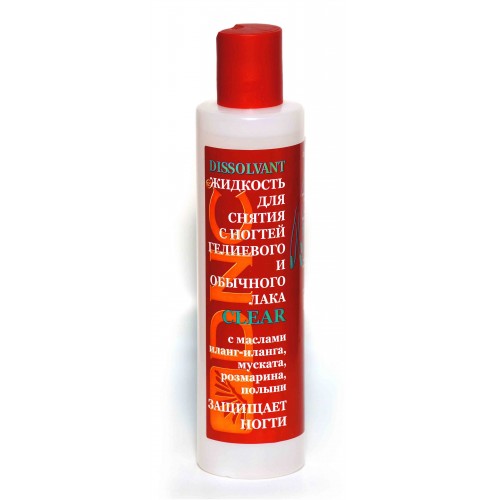 Жидкость для снятия с ногтей всех видов лака «Clear» (DNC) наилучшим образом подходит для снятия гелевых лаков (Шеллак, Гелиш и т.п.)