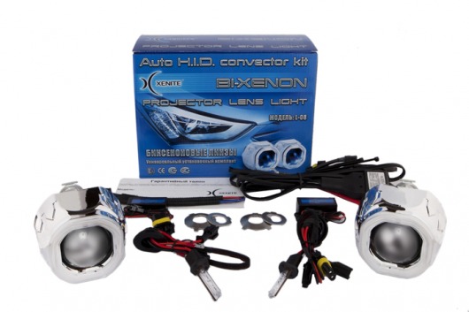 Биксеноновые линзы XENITE L-08 - это комплект из двух линз пятого поколения диаметром 2,5 дюйма, включающий в себя переходники на H4 и H7, а также две ксеноновые лампы с цоколем H1 и цветовой температурой 5000K.