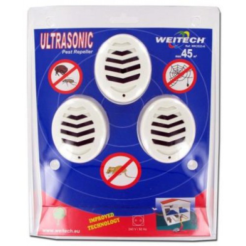Отпугиватель Weitech WK-0523 излучает ультразвуковой сигнал, который не воспринимается человеком, но слышим грызунами, насекомыми и другими мелкими вредителями. Такой сигнал вызывает тревогу, страх и желание покинуть место его распространения.