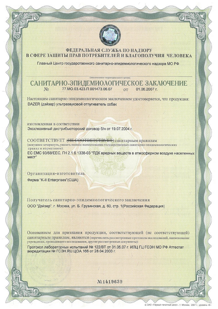 Уровень звукового давления и рабочая частота в устройстве подобраны для отпугивания всех видов собак, кошек и даже волков. УЗ-сигнал вызывает тревогу, страх и желание покинуть место его распространения. Собака воспринимает ультразвук на расстоянии до 15 метров, оптимальное расстояние воздействия — 1-7 метров.