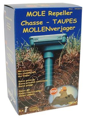 Отпугиватель кротов Weitech-WK675 посылает в почву ультразвуковой сигнал, который не воспринимается человеком, но слышим грызунами, кротами и другими мелкими вредителями. Такой сигнал вызывает тревогу, страх и желание покинуть место его распространения.