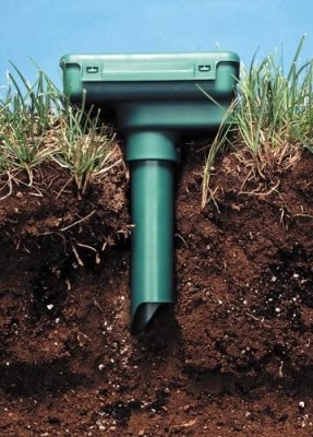 Специальная форма прибора позволяет легко и просто устанавливать его в почву. Встроенный генератор через излучатель посылает сигналы определенной частоты, которые заставляют кротов и грызунов в панике покидать обжитые места в радиусе 100 м2. Это может занять до нескольких недель при постоянном применении отпугивателя.