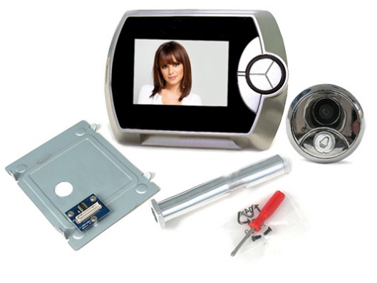 Конструктивно глазок в дверь с видео представляет собой 2 части: наружную (звонок и цифровая камера) и внутреннюю (компактный блок с ЖК-экраном). Наружная часть по внешнему виду мало отличается от стандартного дверного глазка, поэтому почти не привлекает к себе внимания.