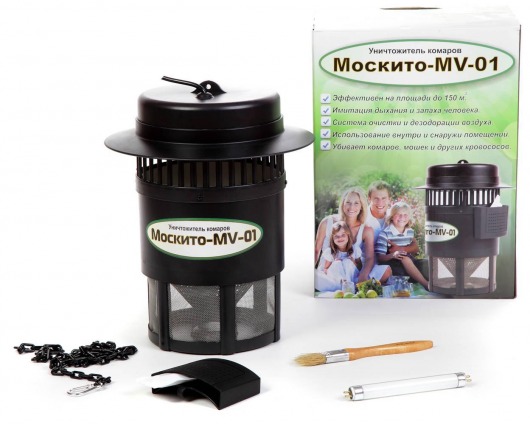 Как известно, кровососущие насекомые находят свою жертву, реагируя на углекислый газ (дыхание) и тепло, а также на ультрафиолетовый свет. Москито MV-01 разработан на основе этих факторов.