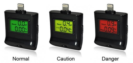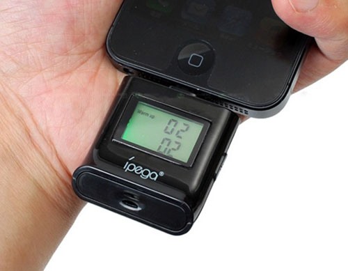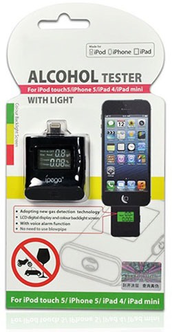 Цифровой алкотестер IPEGA работает совместно с мобильными устройствами на базе ОС iOS. Он подключается к Lightning-разъему смартфона (планшета) Apple и потому не требует собственного источника питания. После тестирования результаты отображаются на ЖК-дисплее, и в зависимости от содержания алкоголя дисплей меняет свой цвет на зеленый, желтый или красный.