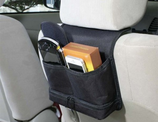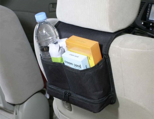 Дополнительный карман JK-58 крепится на штыри подголовника переднего сидения. Карман имеет два основных отсека, в которых пассажиры на заднем сидении могут хранить различные небольшие вещи, или продукты питания (в дальней дороге это весьма актуально).