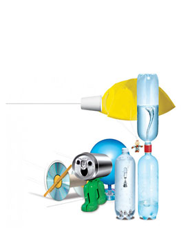 6. КАРТЕЗИАНСКИЙ НЫРЯЛЬЩИК Наполни пластиковую бутылку водой, оставив сверху немного воздуха. Брось внутрь грузы, затем ныряльщика и закрути крышку. Если ныряльщик тонет, он слишком тяжелый. Тебе нужно надавить на пипетку, чтобы избавиться от лишней воды. Продолжай, пока ныряльщик не будет свободно плавать под водой. Осторожно сожми бутылку. Ныряльщик должен начать опускаться на дно. Если это не происходит, он слишком легкий и тебе нужно засосать немного воды в пипетку. Прекрати сдавливать бутылку и ныряльщик должен снова начать подниматься. Может ли твой ныряльщик достать груз и поднять его на поверхность? Сколько очков тебе досталось? Брось вызов своим друзьям или членам семьи и посмотри, кто наберет наибольшее количество очков.