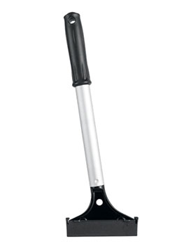 Держатель лезвия выполнен из цинкового сплава. Благодаря уникальной конструкции и креплению скребка под углом работать со скребком очень удобно и легко. Ширина лезвия 10 см, для защиты поверхностей от царапин предусмотрен пластиковый протектор.