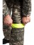 Брюки с застежкой на пуговицу и молнию, пояс с резинкой по бокам и 5 шлевками для ремня. Штрипки по нижнему краю брючин не позволяют штанине задираться.