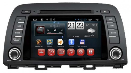 Штатное головное мультимедийное устройство позволяет прослушивать аудиофайлы различных форматов, просматривать видео (в том числе в HD-формате) и фотографии как с внутренней памяти устройства (8 Гб), так и с внешних носителей и SD карт памяти. Вы также можете слушать аналоговое или интернет-радио или смотреть видео онлайн. Или подключить цифровой ТВ-тюнер, чтобы смотреть цифровые каналы прямо на экране устройства. А еще у вас есть возможность подключить DVD-привод и смотреть фильмы и управлять DVD-меню прямо с сенсорного экрана магнитолы.