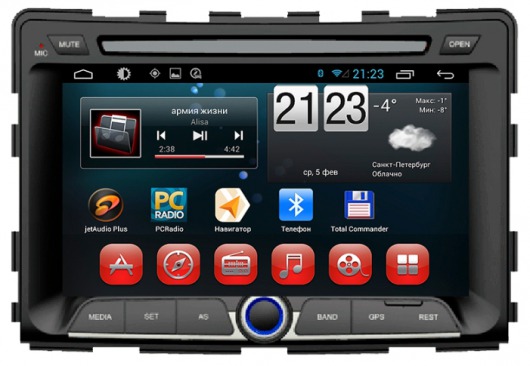 Штатное головное мультимедийное устройство позволяет прослушивать аудиофайлы различных форматов, просматривать видео (в том числе в HD-формате) и фотографии как с внутренней памяти устройства (8 Гб), так и с внешних носителей и  SD карт памяти. Вы также можете слушать аналоговое или интернет-радио или смотреть видео онлайн. Или подключить цифровой ТВ-тюнер, чтобы смотреть цифровые каналы прямо на экране устройства. А еще у вас есть возможность подключить DVD-привод и смотреть фильмы и управлять DVD-меню прямо с сенсорного экрана магнитолы.